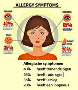 - Jeukende, waterige ogen: Jeuk en roodheid van de ogen, samen met overmatige tranenvloed.