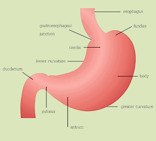 De maag bestaat uit verschillende anatomische en functionele delen: