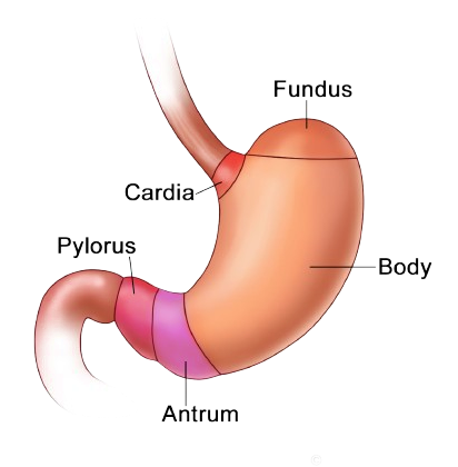 - Cardia (overgang slokdarm-maag),