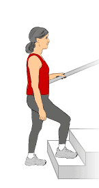 Traplopen is een veelvoorkomende oorzaak van vallen bij ouderen. Deze oefening helpt trap op- en afstappen veilig te oefenen, versterkt beenkracht en verbetert balans en coördinatie.